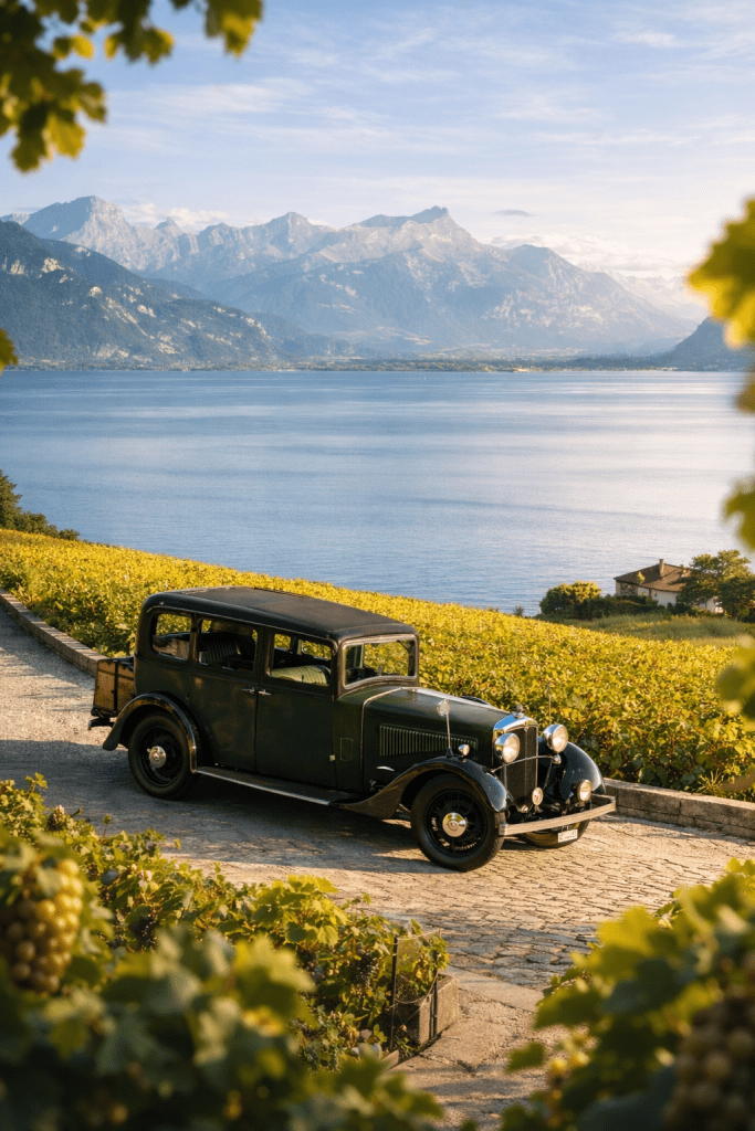 Embarquez pour un voyage hors du temps à bord d’une Morris Isis Six de 1934. Parcourez les routes sinueuses de Lavaux, où les vignobles en terrasses et panoramas s’entrelacent dans une harmonie parfaite.